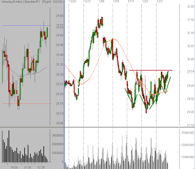 It is still early in the day and breakouts usually don’t occur til later, but this market feels like it is ready to push past the 2960 level. The 5DMA held as support for a right shoulder and a push past 2960 could get this market going nicely. Be aware of the possibility of a push past resistance and then a failure, do not let your guard down, the primary trend remains lower.