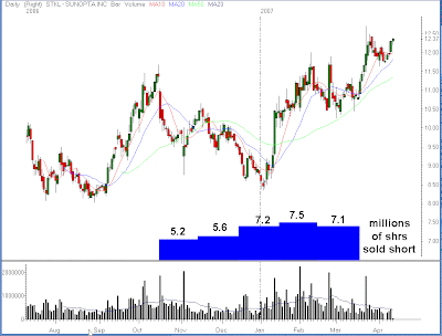 is trading just 30 cents short of an all time high and as of March 15 (latest figures available) there were 7.1 million shares that had been sold short and not yet covered, how do you think that feels? Let’s see if the shorts panic like in DNDN, only problem is a lack of a catalyst here (besides price).
