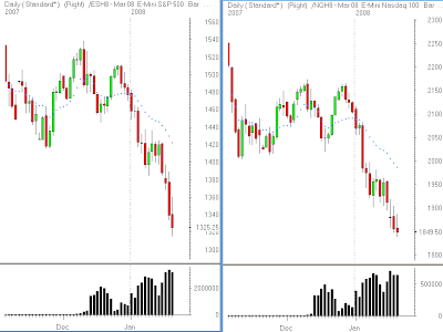 The 1 minute charts of the ES and NQ show the extent of selling.