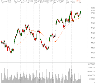 the markets rarely do what “everyone expects” and the quiet consolidation has turned into a nice rally in the Qs with yesterday’s high being taken out. The significance of 47 as potential support going forward is reinforced by this move.