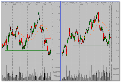 The Qs are stabilizing better than the SPY, but the declining 5DMA offered resistance on the first rally attempt.