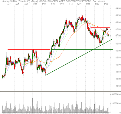 is pulling back as hoped for, and it is above the daily VWAP, but there is no compelling reason to get long with the market below the declining 5DMA. Further stabilization and then upside momentum will be necessary for the market to be bought. Tighten your stops in the solars, many of them are starting to come in aggressively.