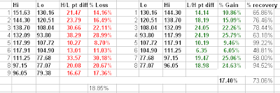 These numbers are just averages, there are always outliers and the current decline is unprecedented at least in my 16 year trading experience. If you are attempting to latch onto a counter trend rally remember that it is a high risk strategy, you must wait for price to confirm a possible turn before getting involved and then manage risk. As we saw today, there were many reasons to think the market would reverse higher, but those reasons were quickly dismissed by the market as prices faded in the last hour. Do not stubbornly hold when the market tells you to sell as it did today, there is always tomorrow to try again if you still have your capital intact.
