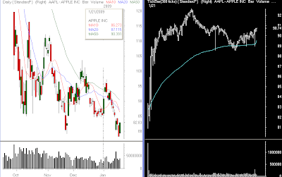 trading above the 50 DMA after reporting earnings. The direction of the 50 DMA is still lower which suggests the stock will not runaway without digesting gains over the next week or so, but the strength is impressive and bodes well for the market in the short term.