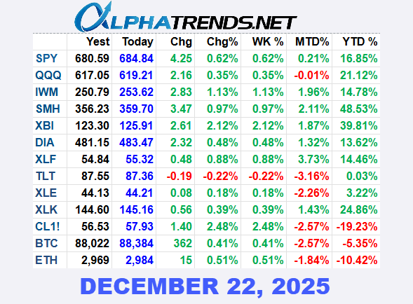 The End-of-Day Market Video update is posted each trading day by 4.30 pm EST. Join Alphatrends today to understand the daily market movements.