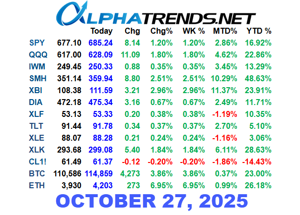 The End-of-Day Market Video update is posted each trading day by 4.30 pm EST. Join Alphatrends today to understand the daily market movements.