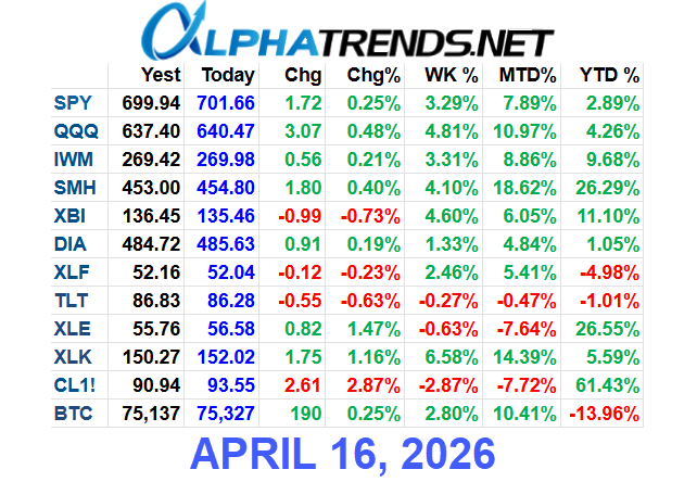 The End-of-Day Market Video update is posted each trading day by 4.30 pm EST. Join Alphatrends today to understand the daily market movements.